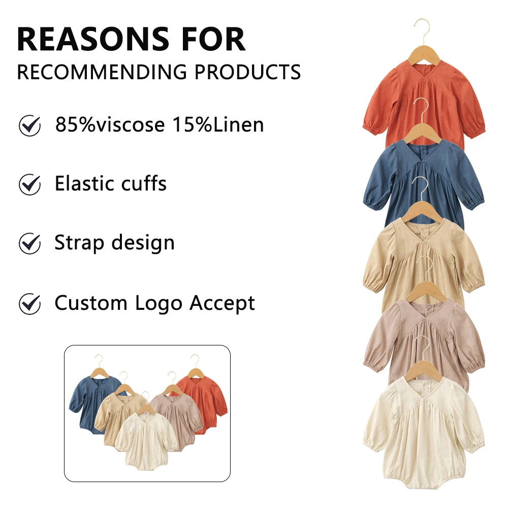 Direct Manufactory Price Children Jumpsuits Spring V-Neck Long Sleeves Cute Snap Button Closure Unisex Toddler Cloths